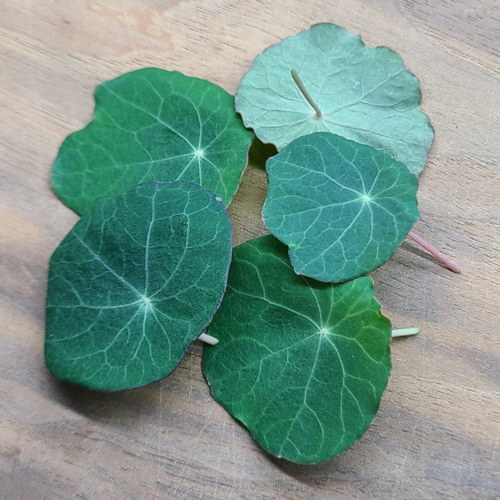 Nasturtium microgreens have a unique, wasabi-like flavor that will elevate your dish. Their unique shape and powerful spice make them a favorite garnish for many high-end restaurants. Not to mention they are super healthy! The leaves contain antibiotic, antibacterial, and antifungal properties that will boost your immune system. Leaves are carefully harvested one at a time and range in size from .75-1.5 inches in diameter.